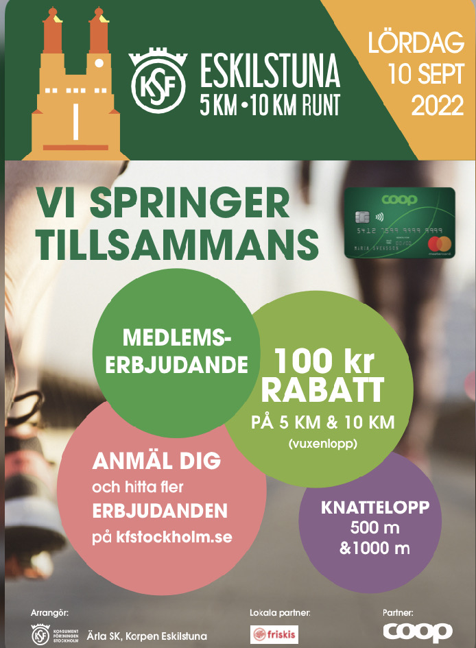 KfS Eskilstuna Runt 16 sept 2023 Länk till mer information http://www.kfseskilstunarunt.se/Main/Start.asp