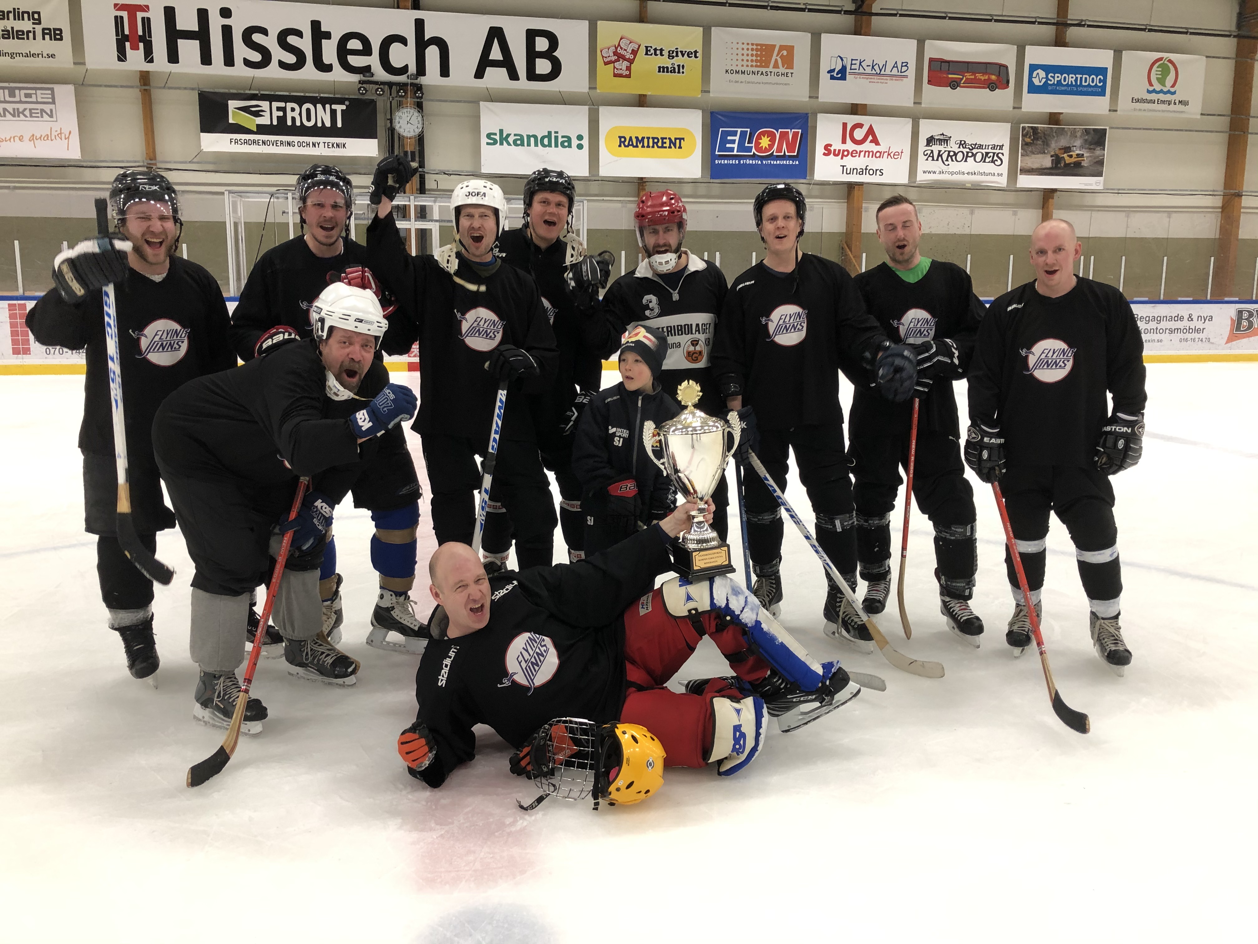 Regerande Rinkbandymästarna på toppbilden heter Flying Finns!Vilket lag tar titeln 2022/2023 |